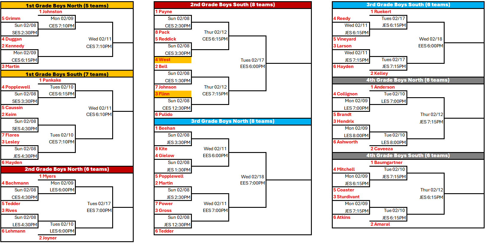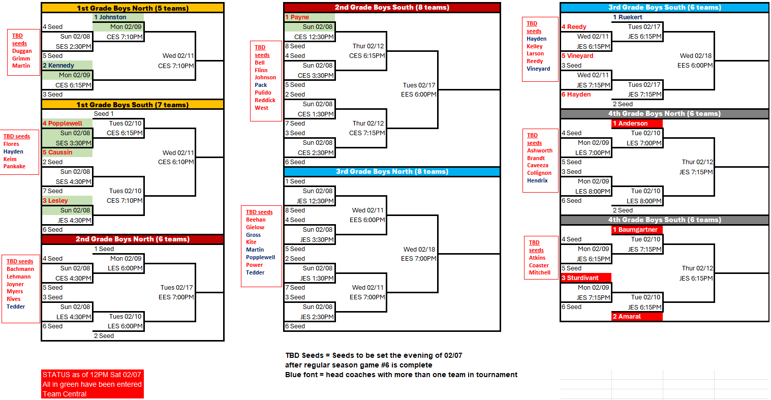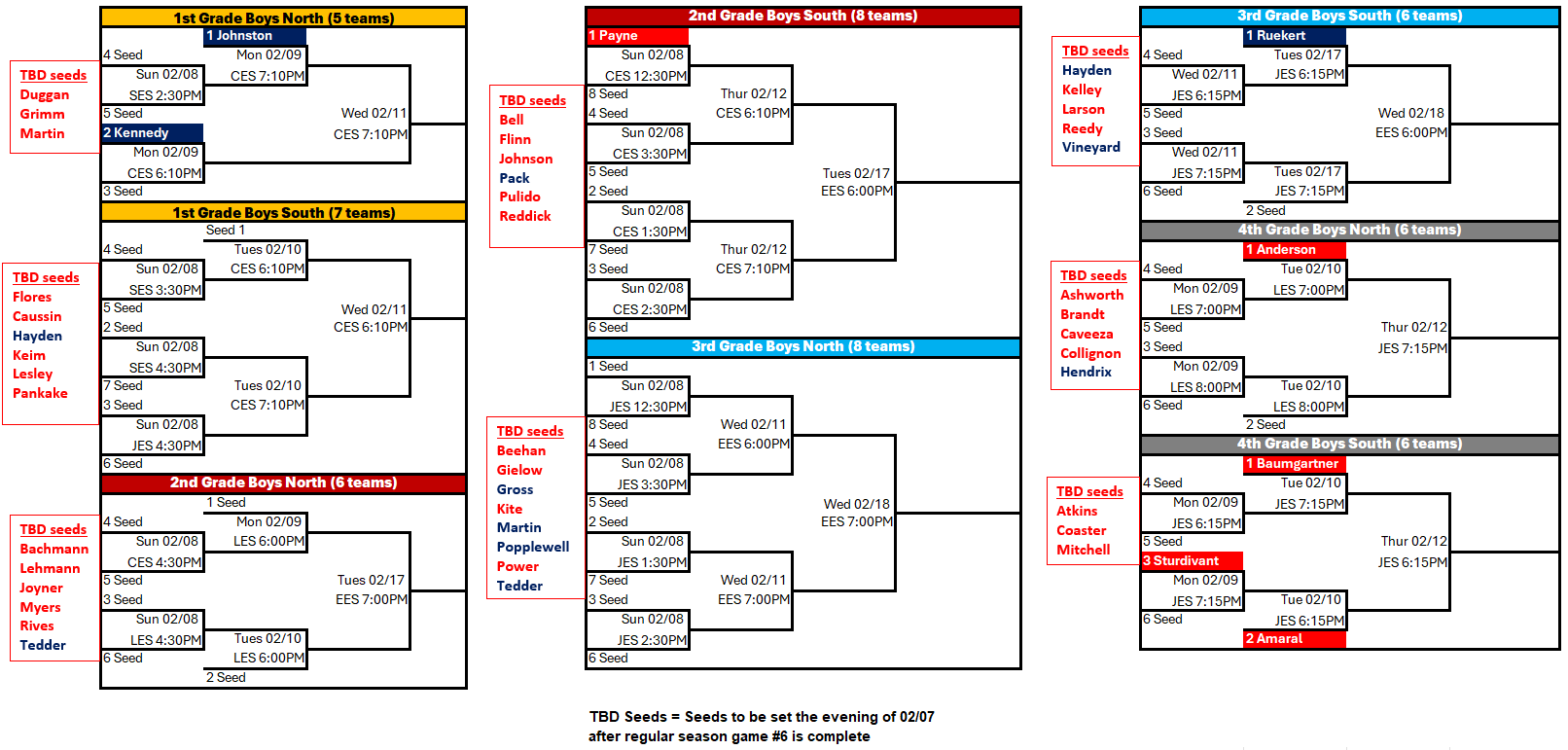 The remaining season info below is for all divisions that will participate in our in-house tournament.
