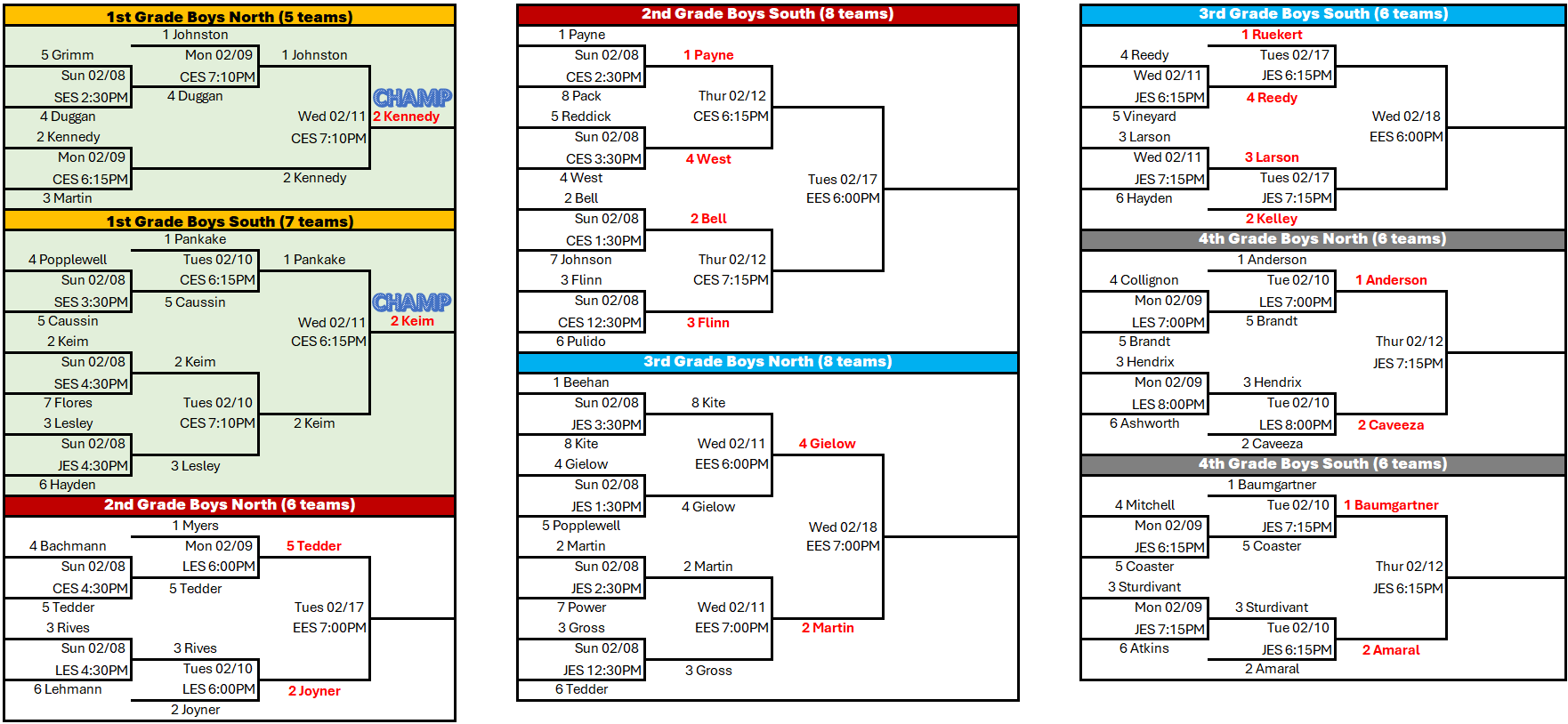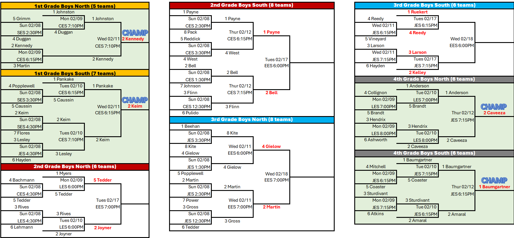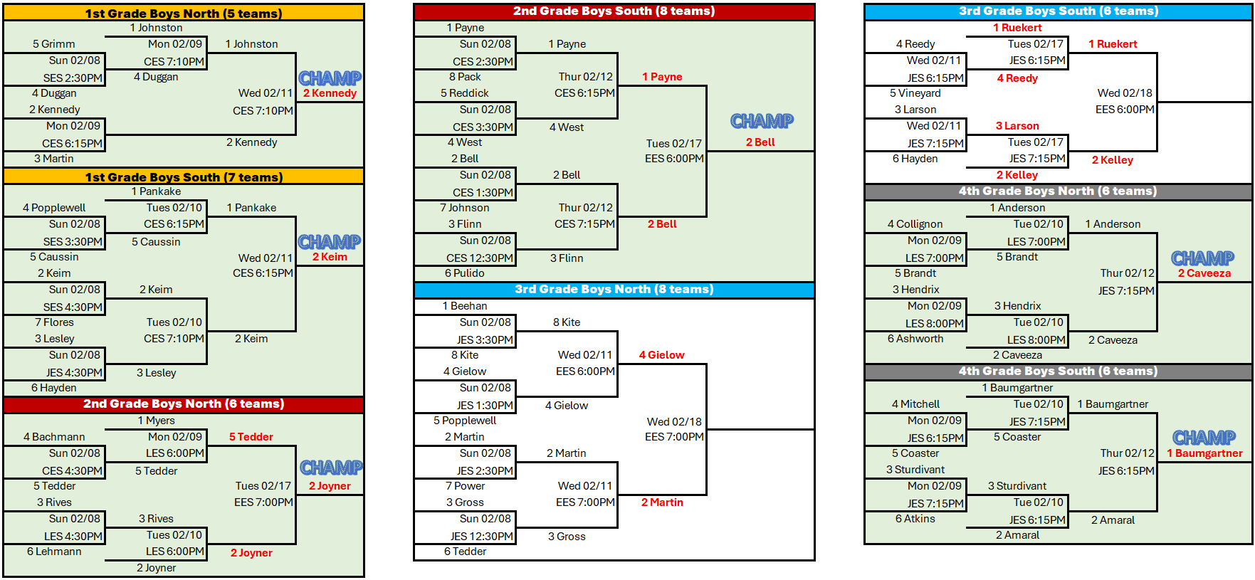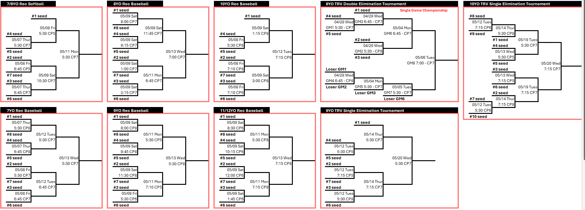 The remaining season info below is for all divisions that will participate in our in-house tournament.