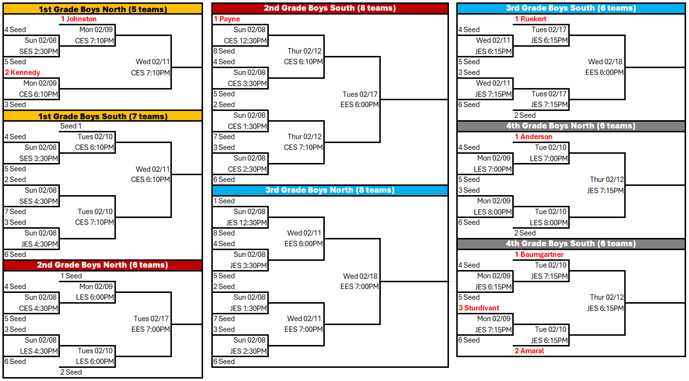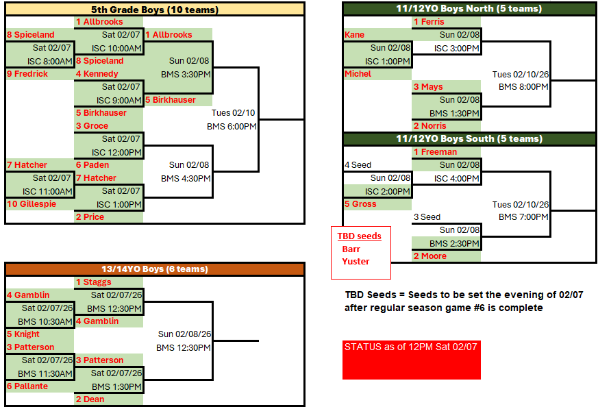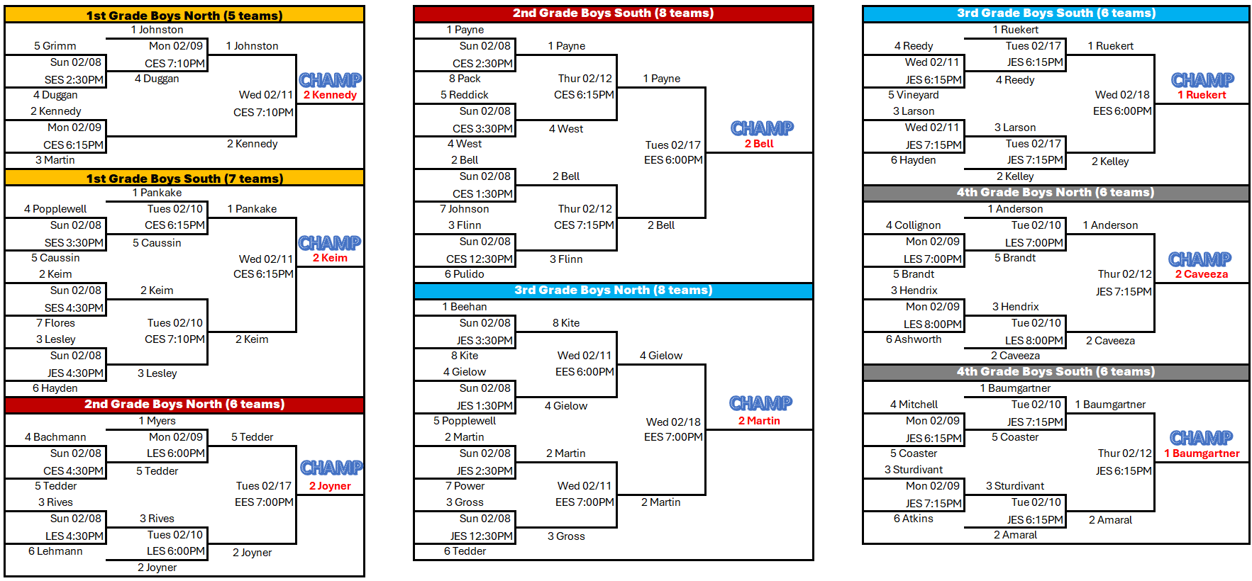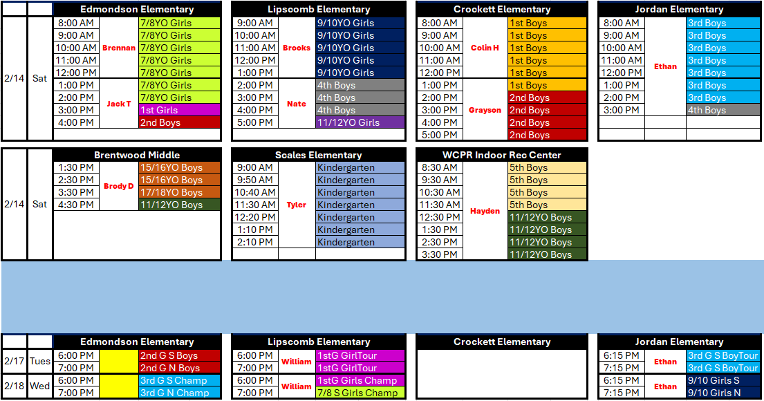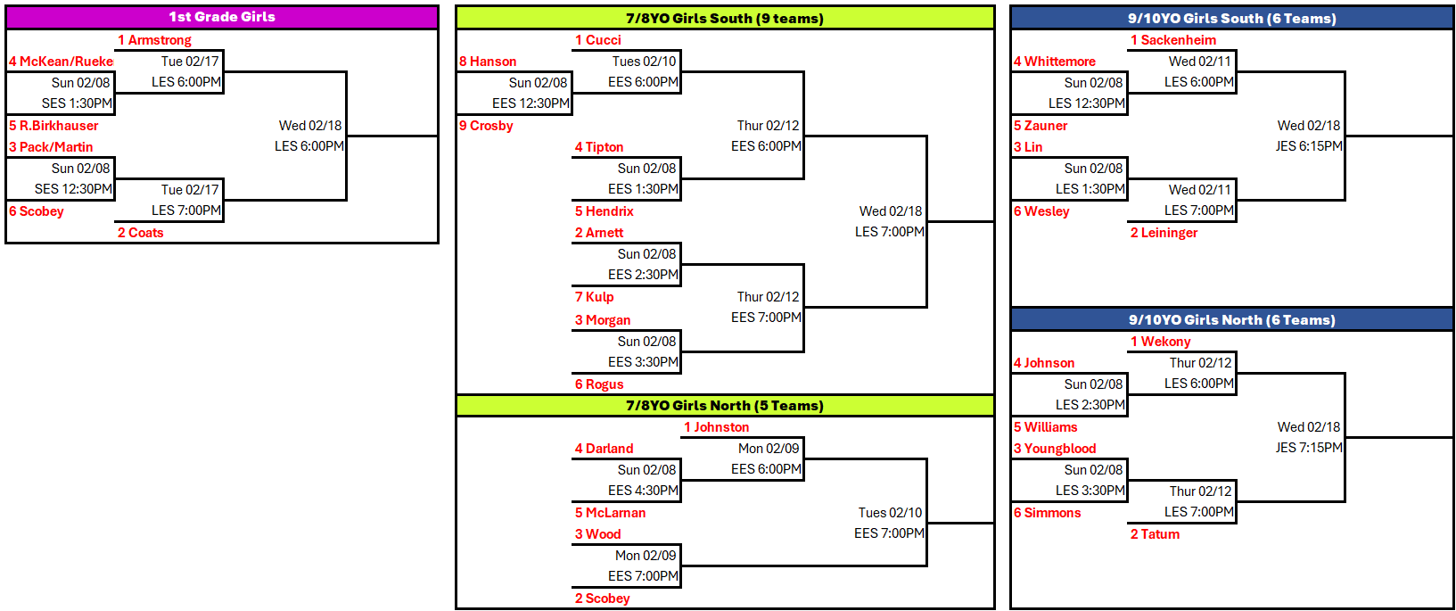 This email is intended for all 1st grade Boys & Girls, 2nd grade Boys, 3rd grade Boys, 4th grade Boys, 5th grade Boys, 11/12YO Boys, 13/14YO Boys, 7/8YO Girls, 9/10YO Girls. These divisions represent the teams that will participat...