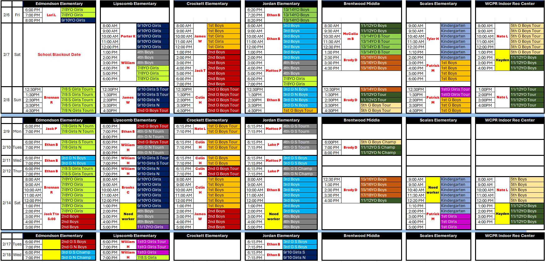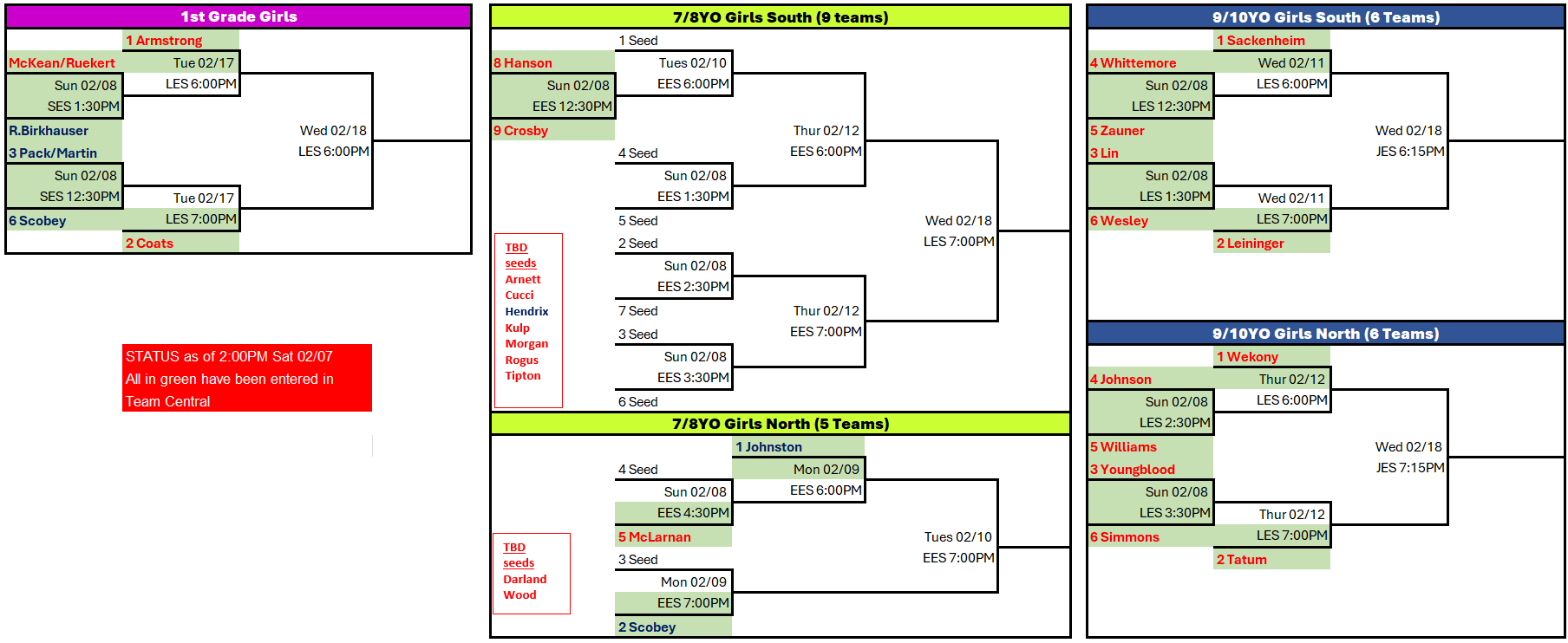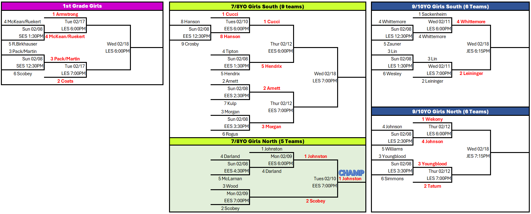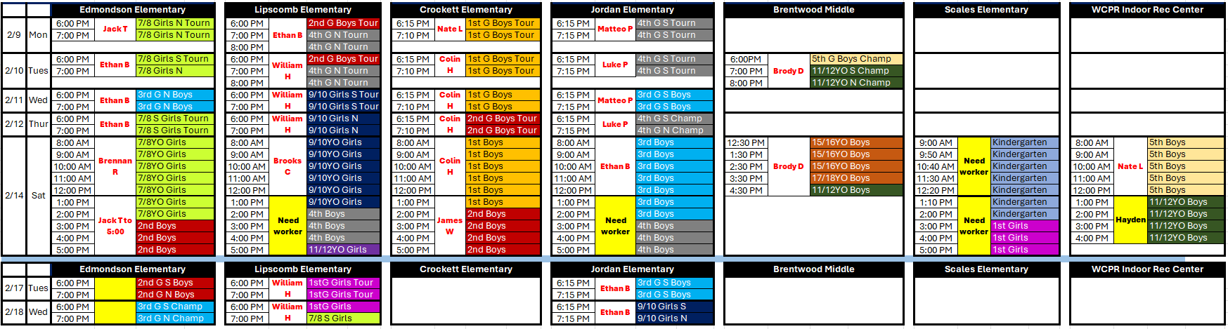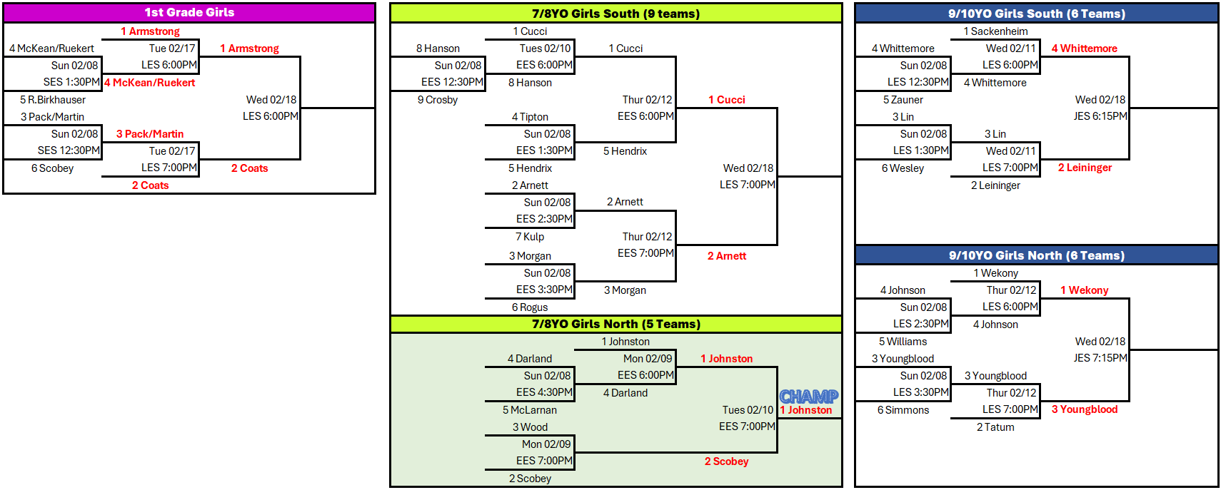 This email is intended for all 1st grade Boys & Girls, 2nd grade Boys, 3rd grade Boys, 4th grade Boys, 5th grade Boys, 11/12YO Boys, 13/14YO Boys, 7/8YO Girls, 9/10YO Girls. These divisions represent the teams that will participat...