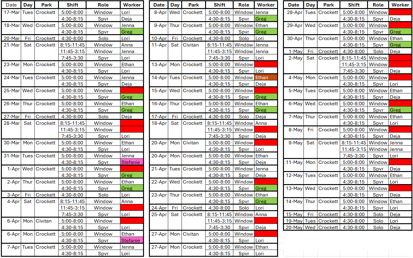 We will be sharing the first couple of weeks, possibly more, of the practice schedule with our head coaches tomorrow afternoon. The rest of the practice will be provided a few days later.