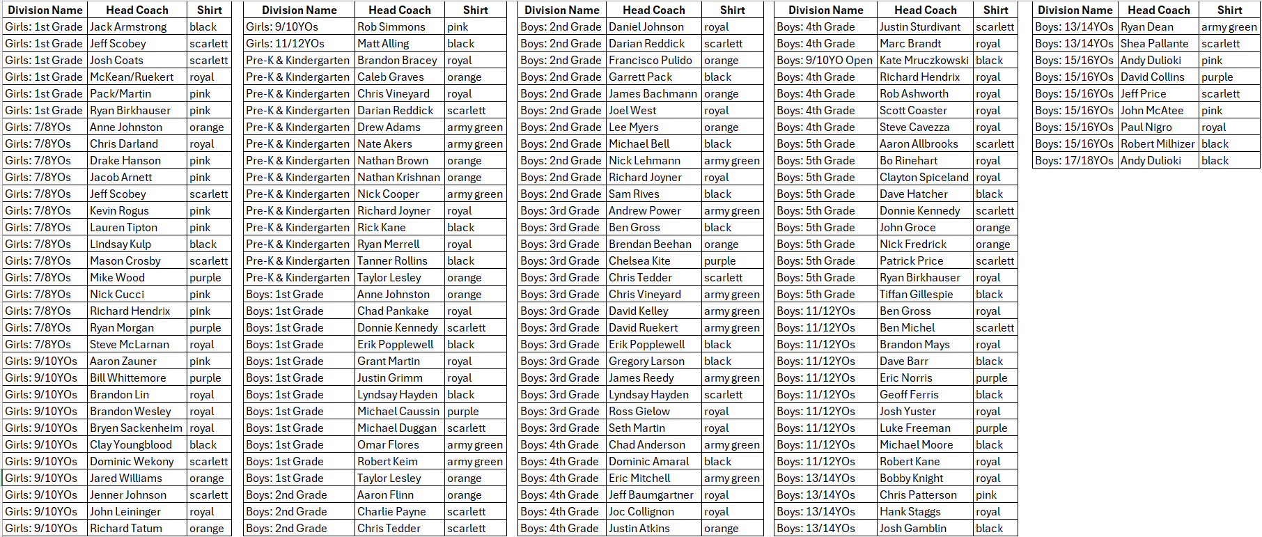 All head coaches have received their team rosters with contact info. These will be posted to Team Central tomorrow, and we will click to ‘post’.