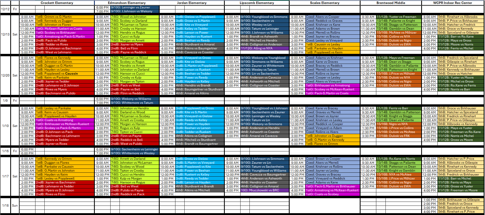 for the complete schedule. Click on the Bobby tab.