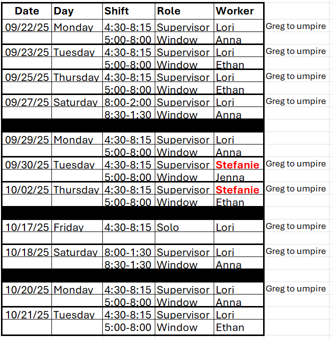 Posted Schedules
