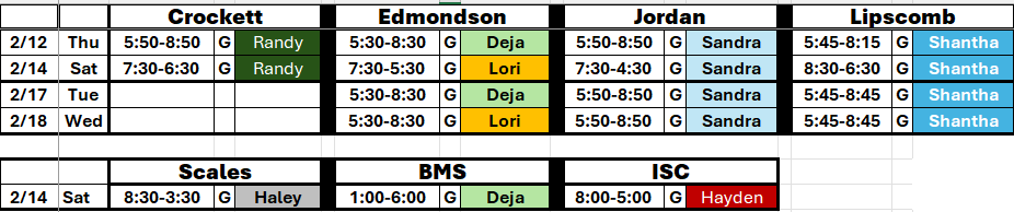 Schedule for team-by-team usage