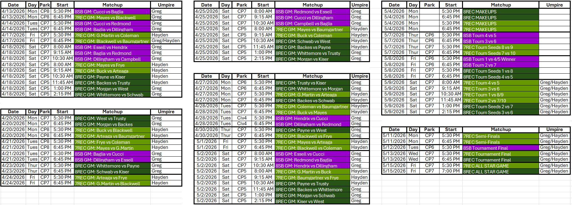 Baseball, Softball & Basketball in Brentwood Tennessee