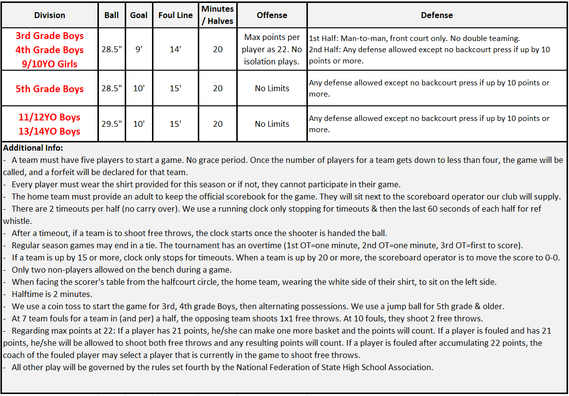 - A copy of the below can be found at the scorer's table at each gym.