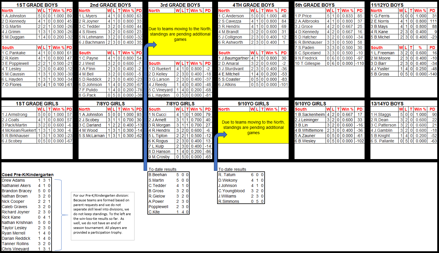 See below for the standings for the in-house divisions through 01/18.