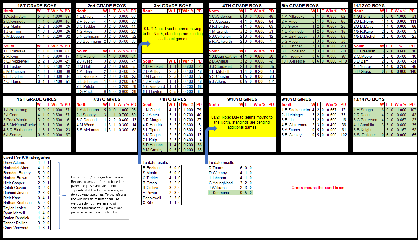 5. Please be aware we have a North division and a South division for this age group. Refer to the standings for which your team is in.