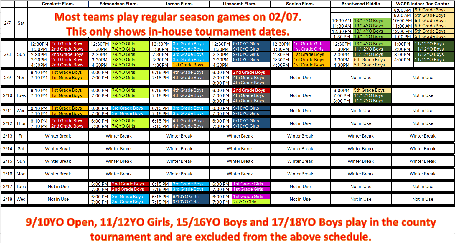 Game day is Saturday. All 134 Brentwood teams are playing. Games last most of the scheduled period so no need to arrive early. Maybe 10-15 minutes before your scheduled start.