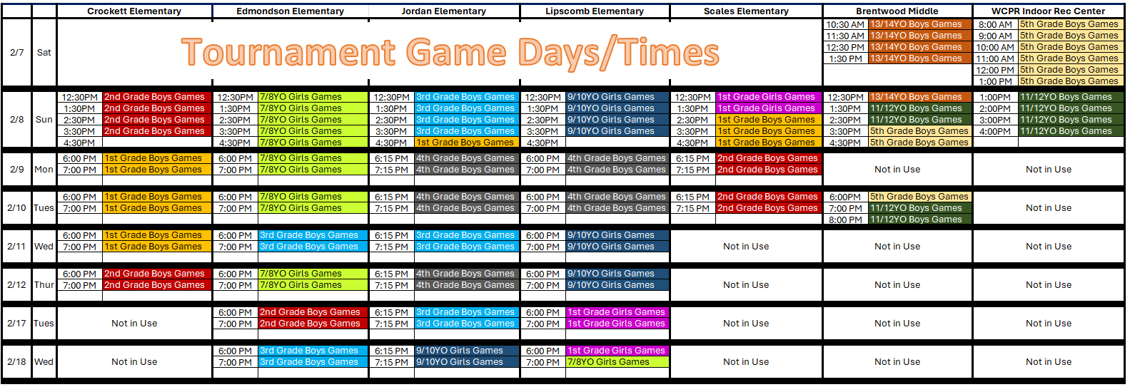 For all divisions, we are actively working on the game schedules. We plan to have them complete later next week.